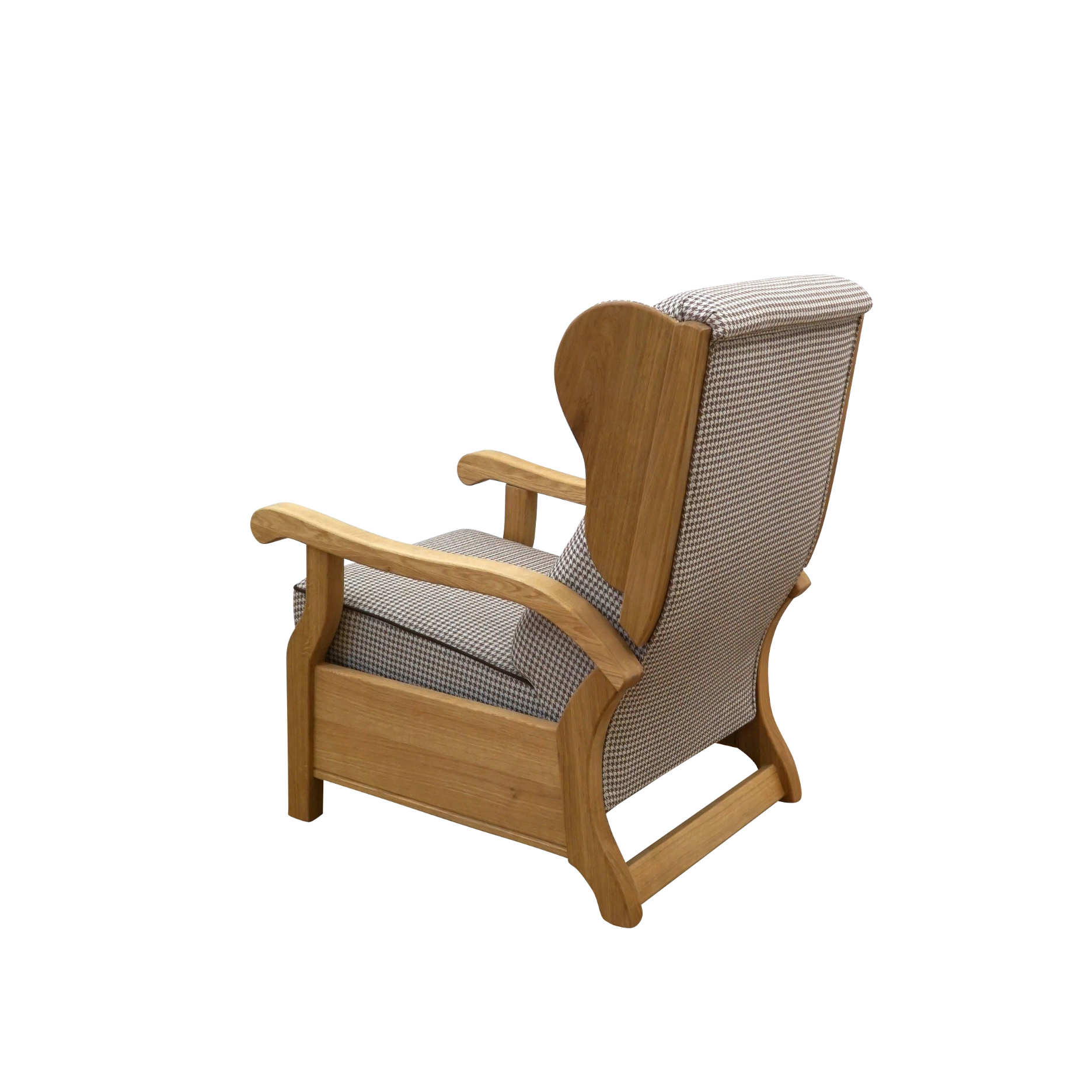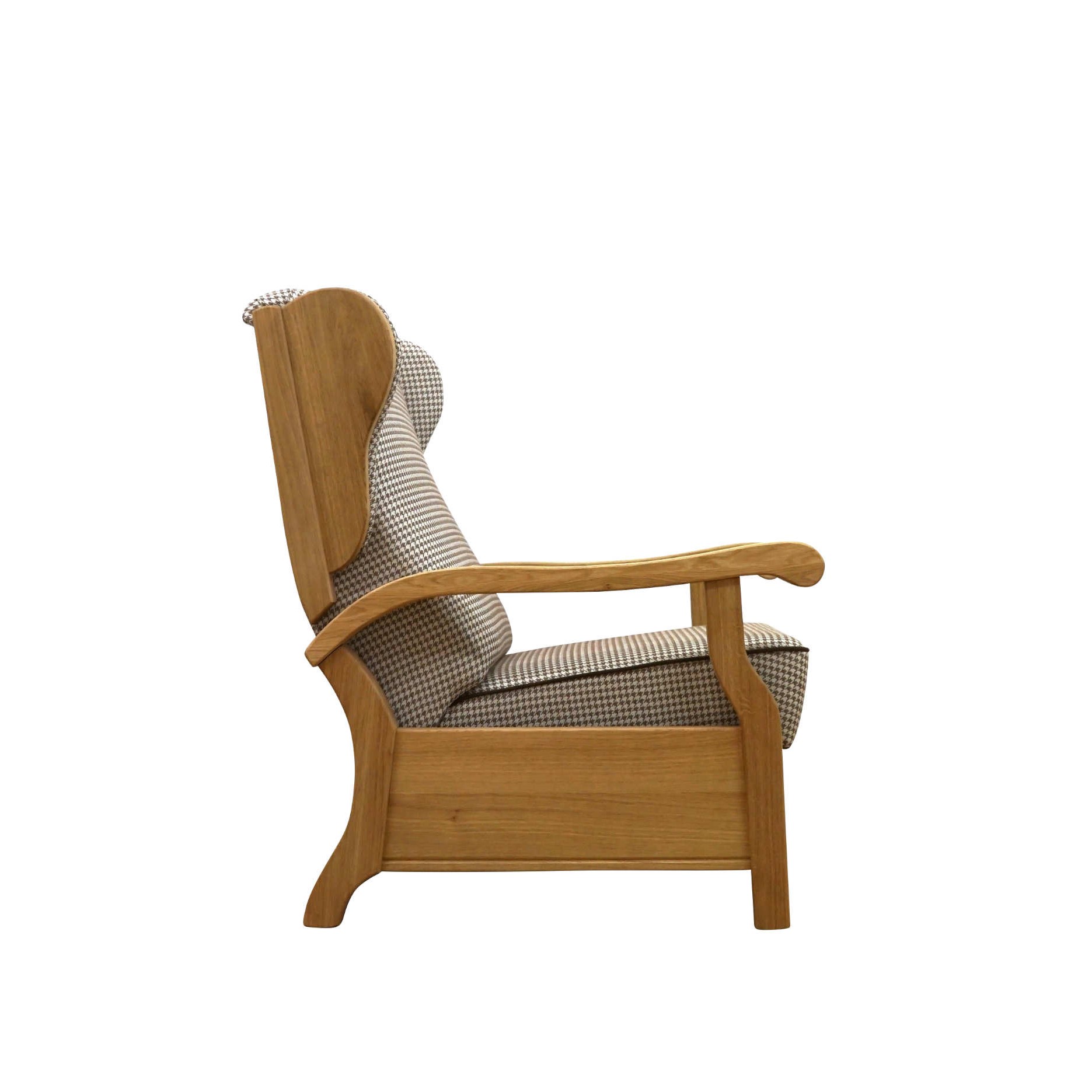Standardmäßig wird dieses Möbelstück in Fichte gefertigt. Auf den Bildern ist der Sessel in Eiche abgebildet. Dies ist auf Anfrage möglich.